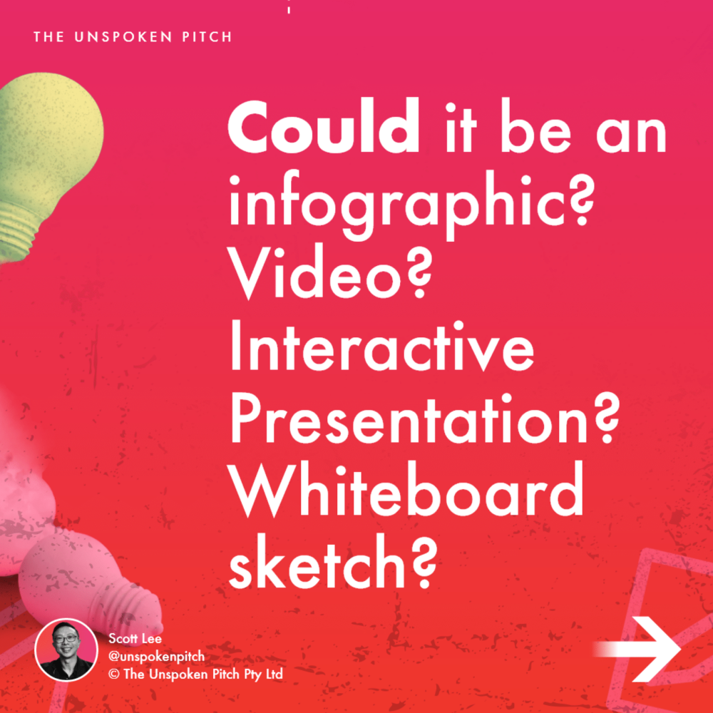 Could it be an infographic? Video? Interactive Presentation? Whiteboard sketch?