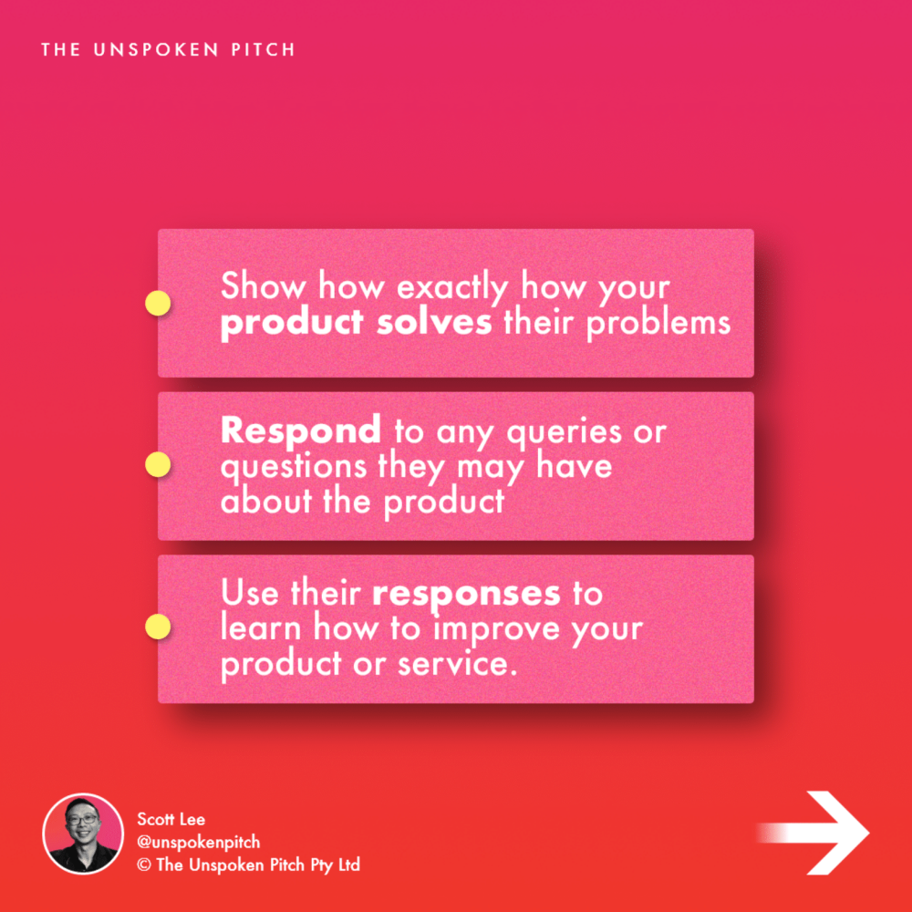 After presenting your product or service, prepare to listen to the customers. Ask questions and take notes of your prospects so that you can know their needs: