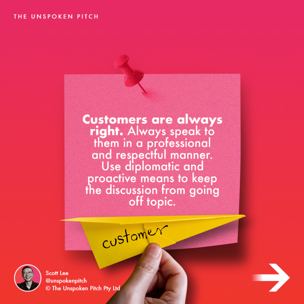 Customers are always right. Always speak to them in a professional and respectful manner. Use diplomatic and proactive means to keep the discussion from going off topic.