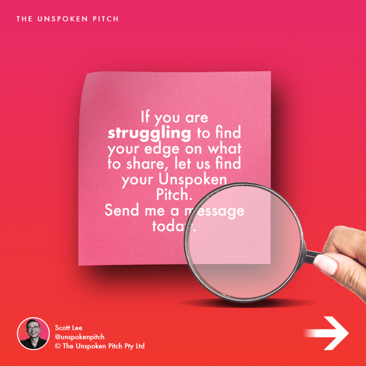 If you are struggling to find your edge on what to share, let us find your Unspoken Pitch.