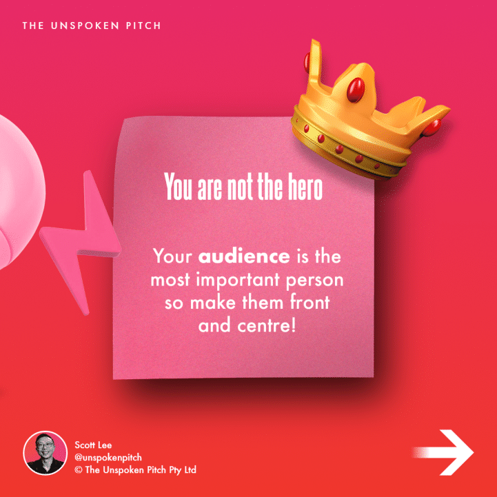 You are not the hero – Your audience is the most important person so make them front and centre!