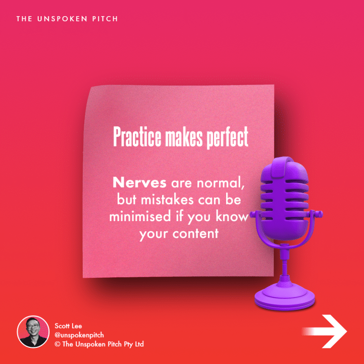 Practice makes perfect – Nerves are normal, but mistakes can be minimised if you know your content