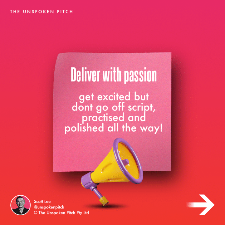 Deliver with passion – get excited but dont go off script, practised and polished all the way!