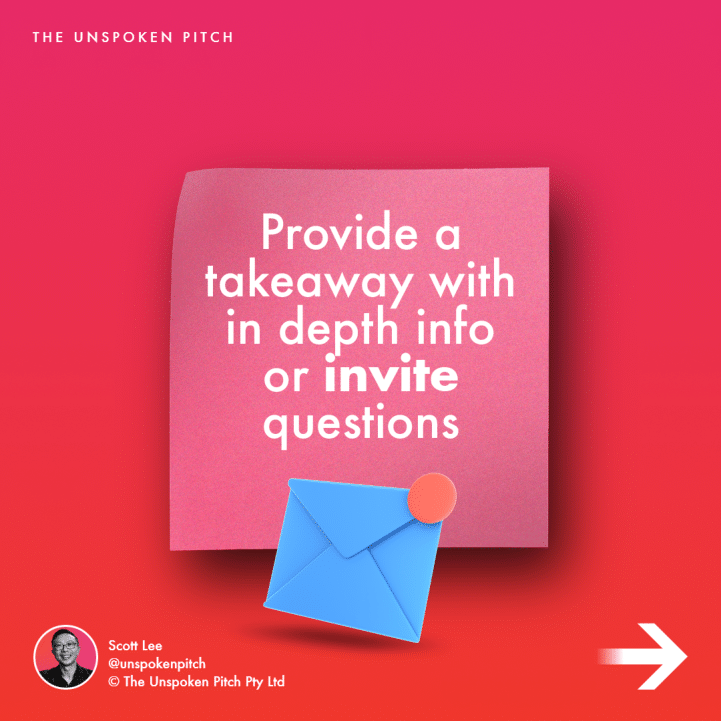 Provide a takeaway with in depth info or invite questions