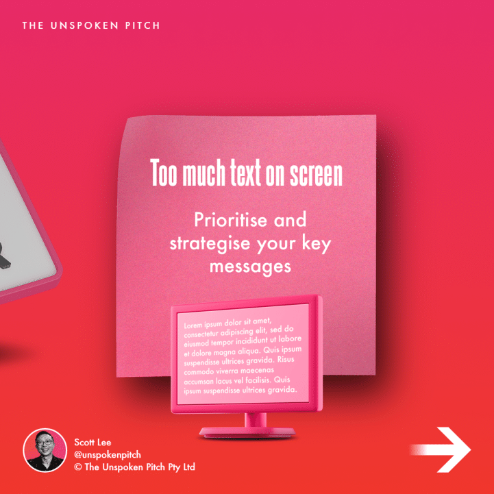 Too much text on screen – prioritise and strategise your key messages