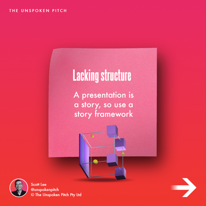 Lacking structure – a presentation is a story, so use a story framework