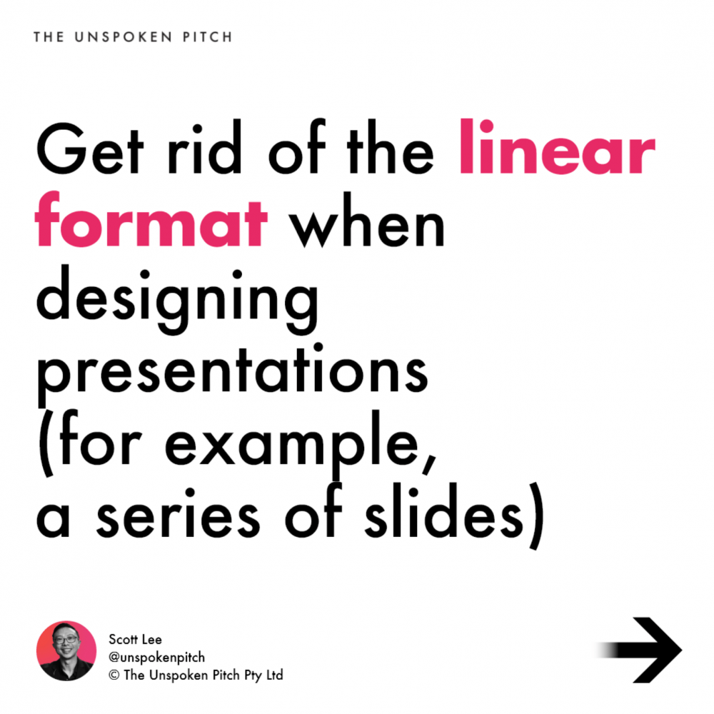Get rid of the linear format when designing presentations (for example, a series of slides)