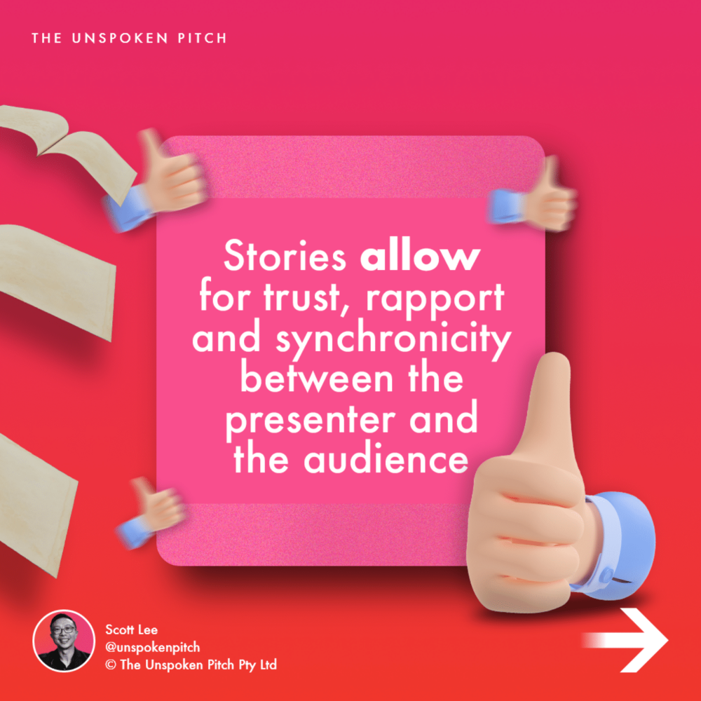 Stories allow for trust, rapport and synchronicity between the presenter and the audience