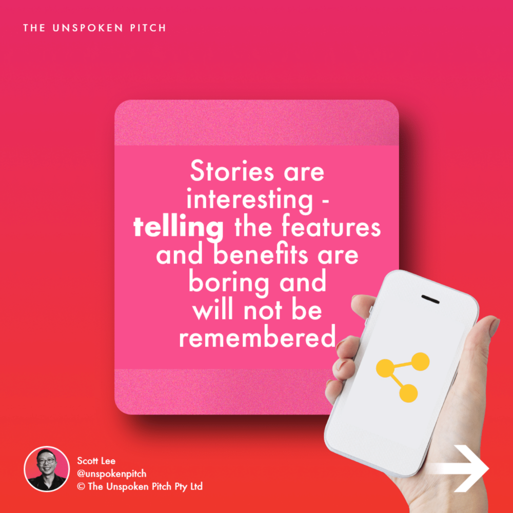 Stories are interesting – telling the features and benefits are boring and will not be remembered