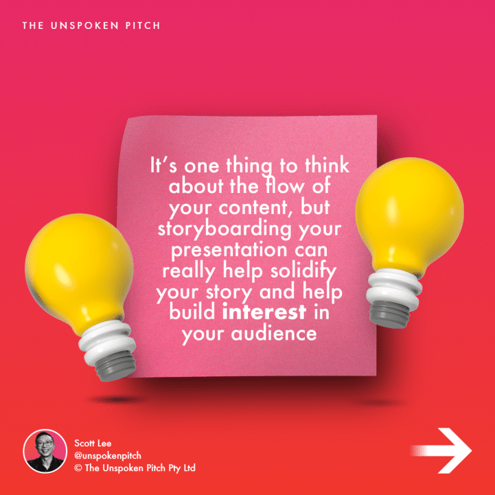 It’s one thing to think about the flow of your content, but storyboarding your presentation can really help solidify your story and help build interest in your audience