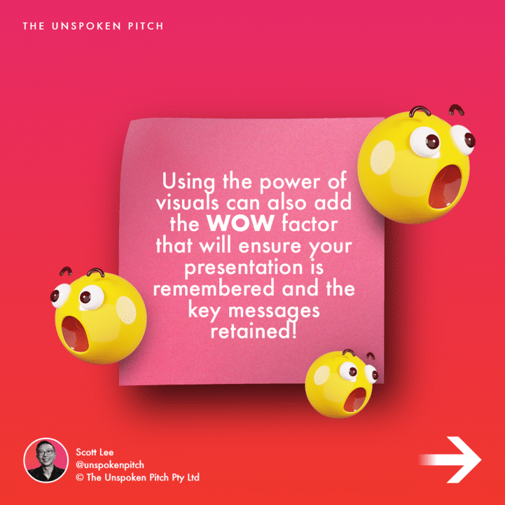 Using the power of visuals can also add the WOW factor that will ensure your presentation is remembered and the key messages retained!